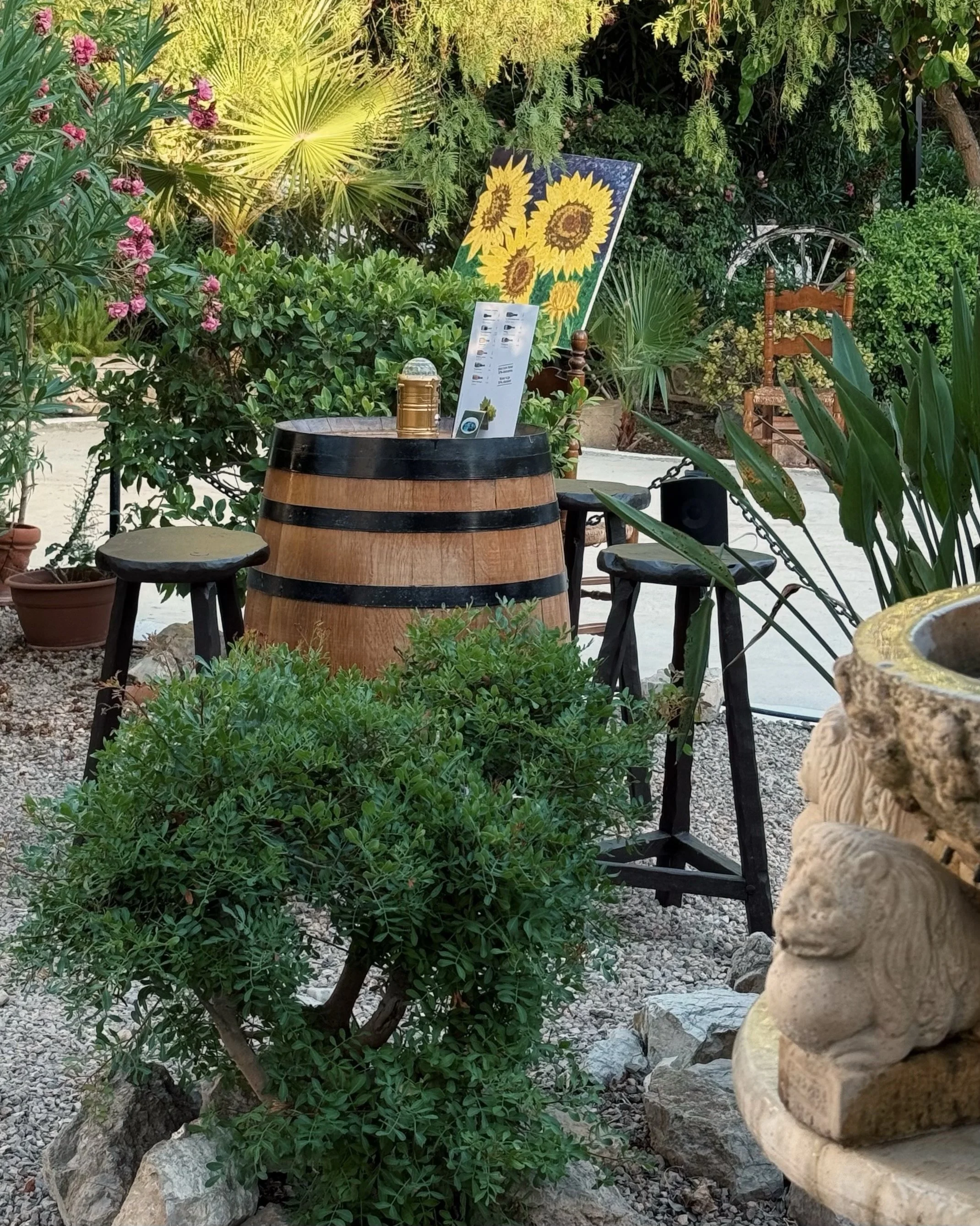 Cada mesa cuenta su historia, ofreciendo un ambiente único para disfrutar de la naturaleza y la tranquilidad de Mallorca.